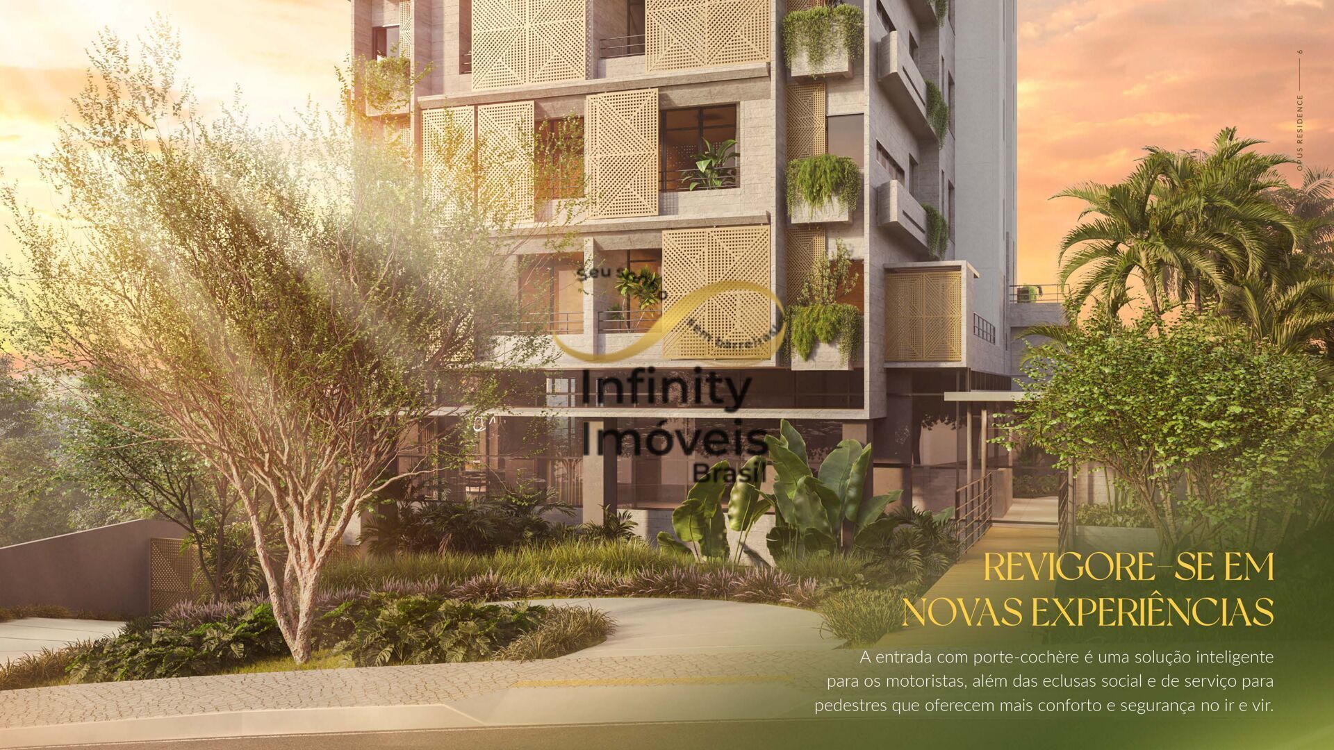 O Opus é um projeto de alto luxo que aposta no conceito do design biofílico para se sobressair como uma potência do viver. Sua fachada humanizada com elegantes muxarabis e jardim vertical impactam, com exclusividade, o cenário ao redor.