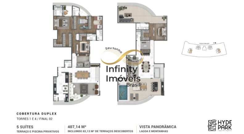 Elegante cobertura duplex de 5 dormitórios à venda no charmoso bairro Lagoa dos Ingleses em Nova Lima-MG. Esta deslumbrante propriedade oferece um total de 5 suítes e 6 banheiros, distribuídos ao longo de uma área privativa generosa de 407.14m².
